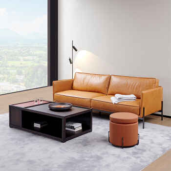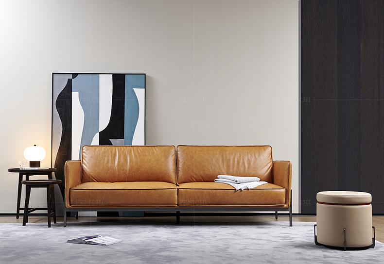 フェニはその意味式が極めて簡単で、真皮のソファーとオレンジの皮質の3人の寝室で、北欧の近代的で簡単な小型客間の家具Trapani-頭の階の牛革【ソファー】の意味式はきわめて簡単です。
