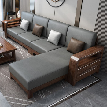 联匠ソファ現代中国式胡桃木実木ソファセット新中国式実木布芸ソファサイズの部屋型リビング家具綿麻布-シングル+ツイン+三人+茶何+方6801スプリングゴムシートバッグ【写真価格ブランド見積】-京東
