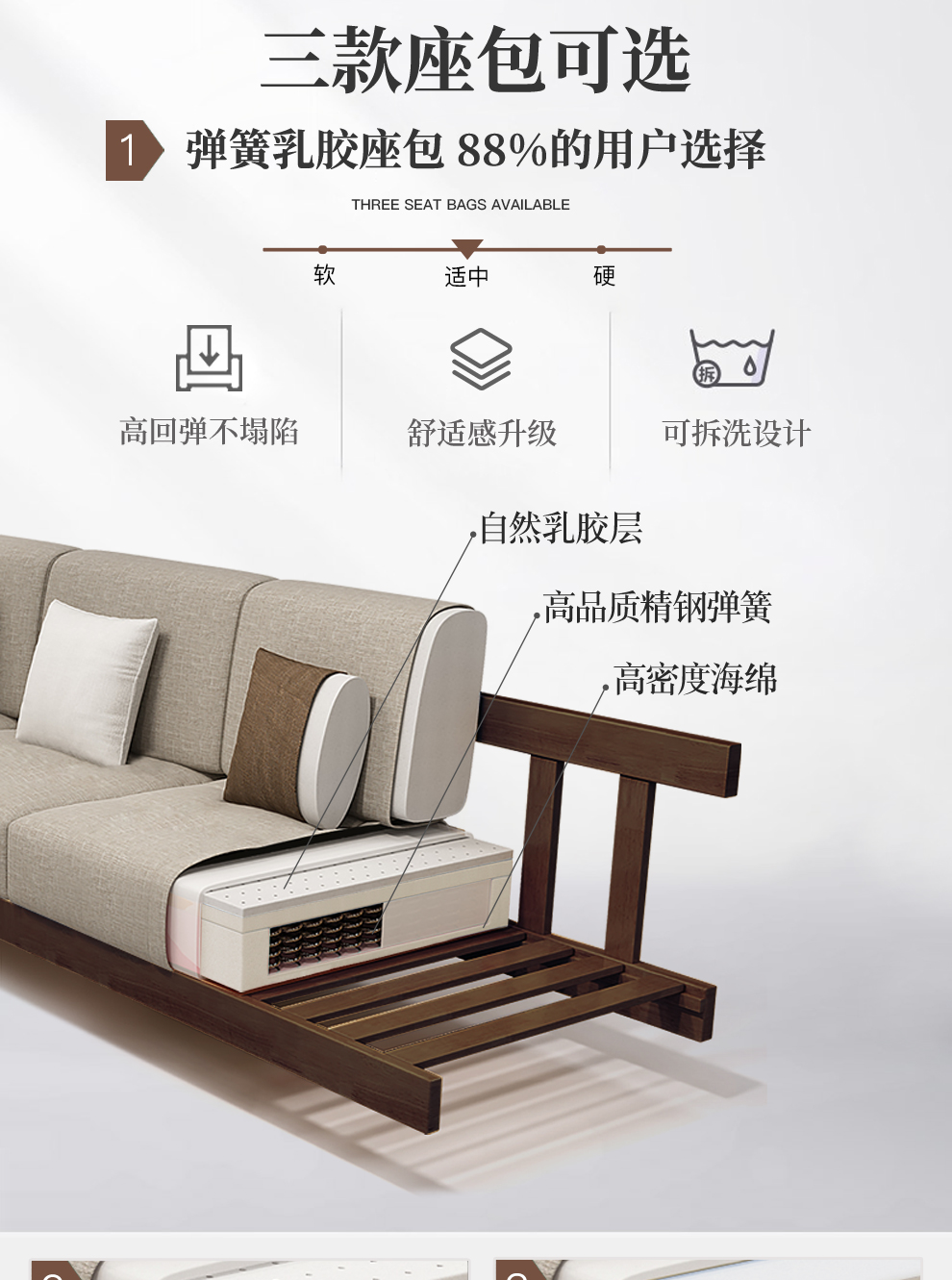 联匠ソファーの新しい中国式ソファー胡桃木の実木ソファセットの木の布芸ソファーの大きさの戸型のリビングルームの家具の綿麻布-シングル+ツイン+三人+茶卓6801スプリングゴムシートのバッグ
