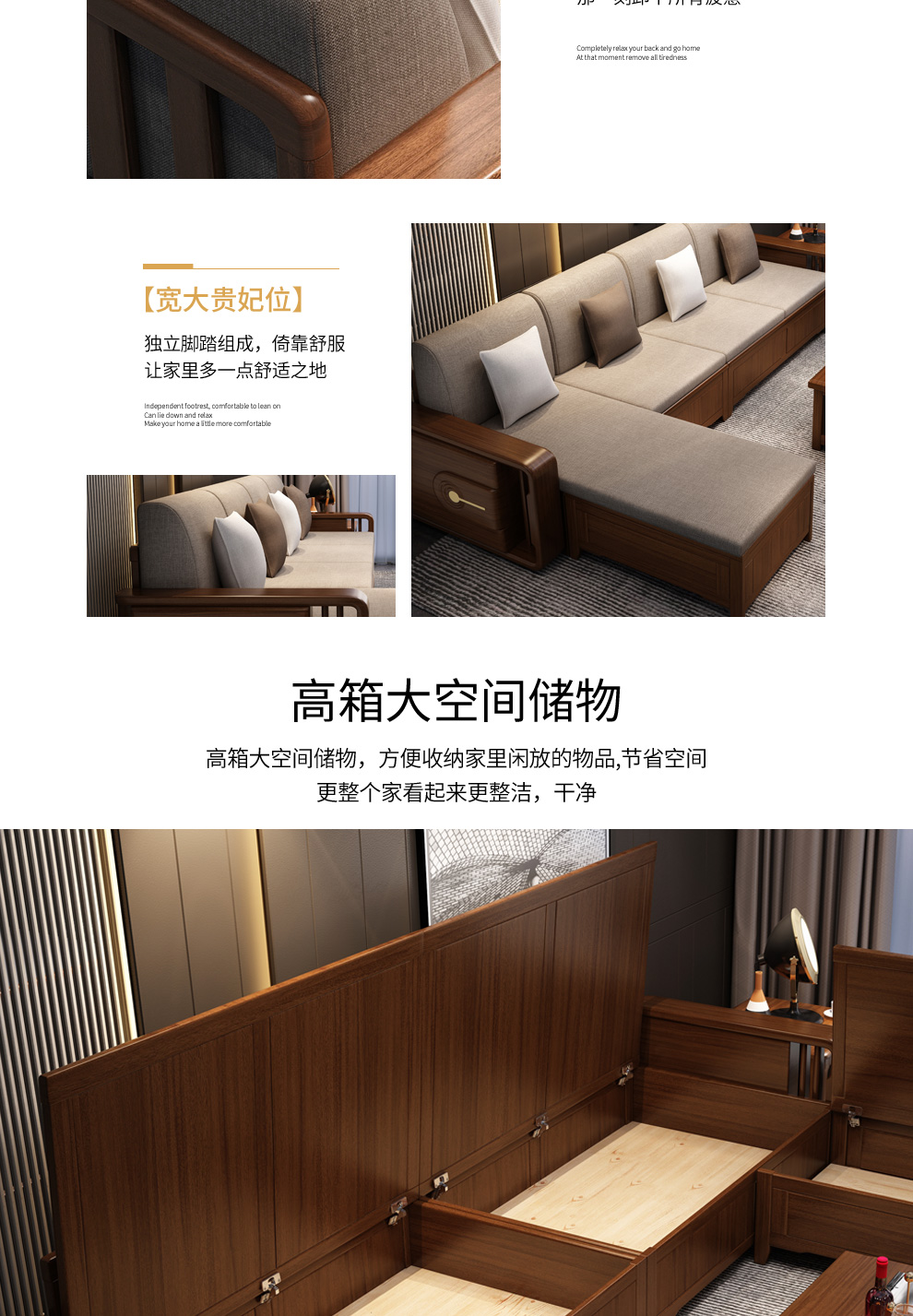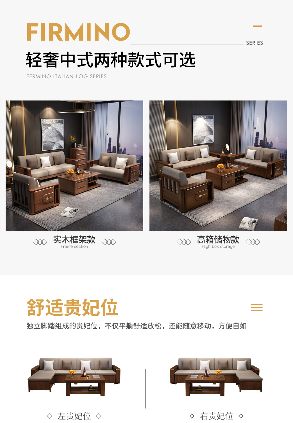 聯匠のソファー胡桃木の実木ソファ冬と夏の両用の物置ソファ多機能の貴妃の角ソファーのリビングルームのセットは1+2+3現代中国式ソファセット6131簡単にお茶の普通タイプを予約します。