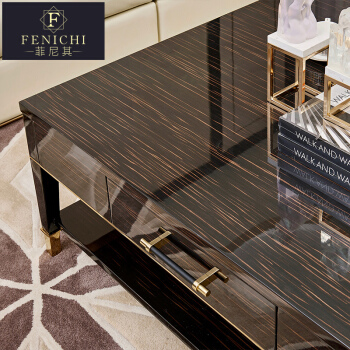 フィニの新しい古典の後、現代茶のテーブルに黒い正方形の茶をいくつか持ってきて、抵抗茶のいくつかのテレビの箱を組み合わせてセットにしました。リビングルームの家具の光漆の装飾面+純銅の取っ手1400*750*450 mm