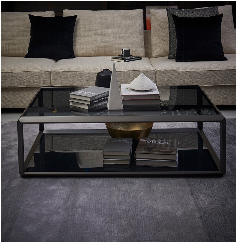 フィニそのイタリア式の極略ステンレス長方形の鋼化ガラスの透明茶の組み合わせは軽奢な茶卓の客間の家具を注文して糸の古い銅のステンレスの1220×820×360 mmを引き延ばします