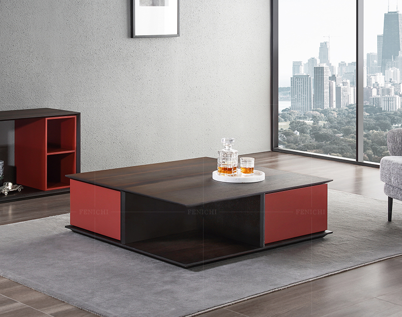 フィニその意味式はきわめて簡単な正方形のお茶の何1.1メートルの実木のお茶機の大きい家型は引き出しを持ちます北欧の近代的な客間のお茶のテーブルのお茶の何の意味式はきわめて簡単です。