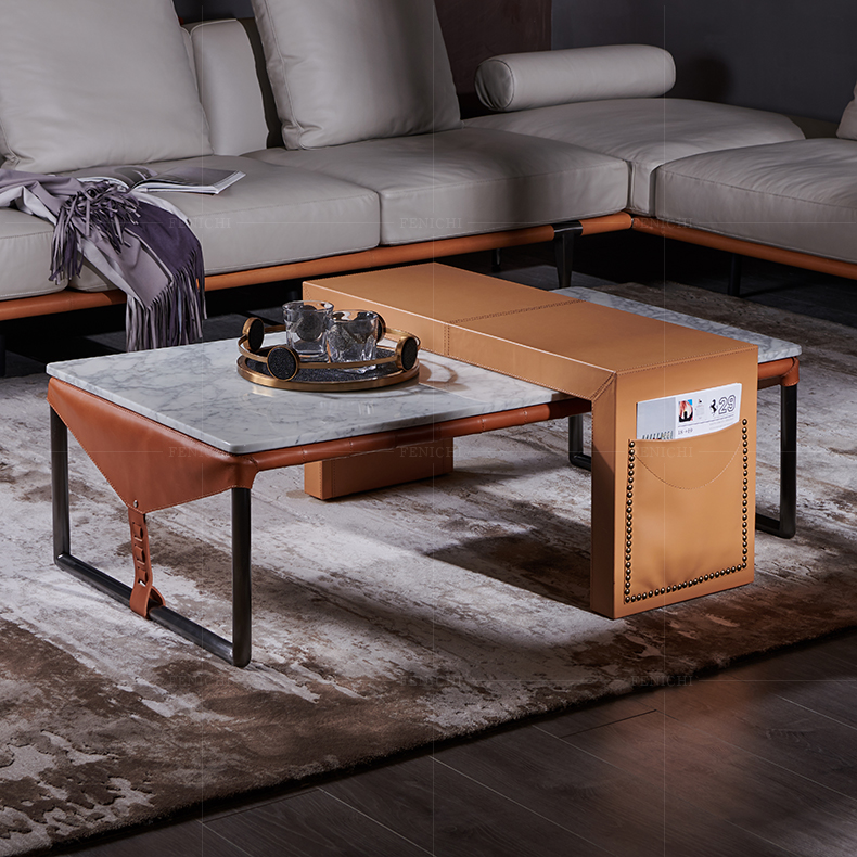 フィニのイタリア式の極簡単な長方形の大理石のお茶の何の1.2メートルの馬鞍の皮のステンレスの後で近代的で簡単で奢侈なお茶のテーブル【イタリアの鞍の皮の大理石】茶の何を整えますか?