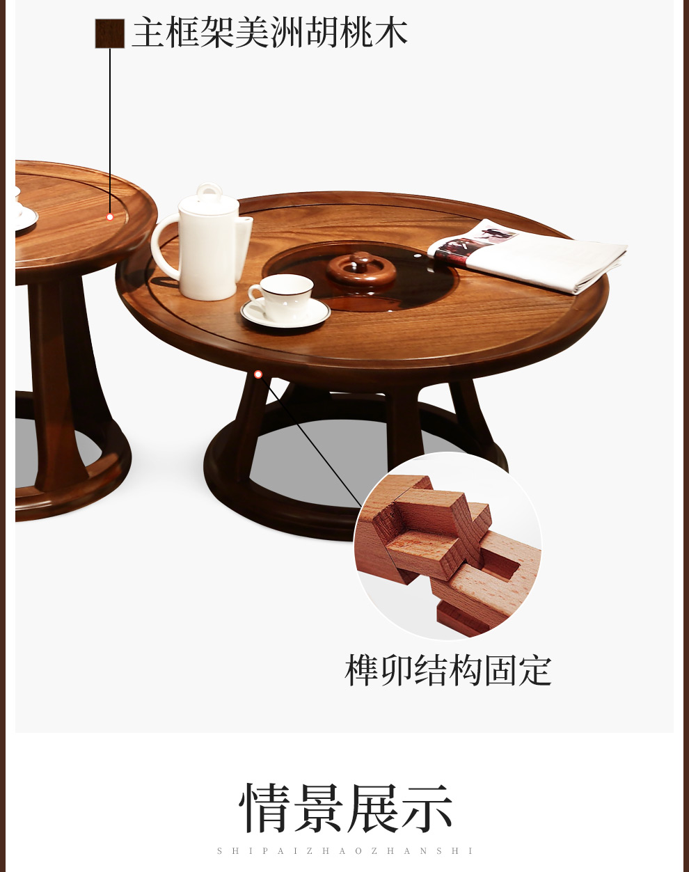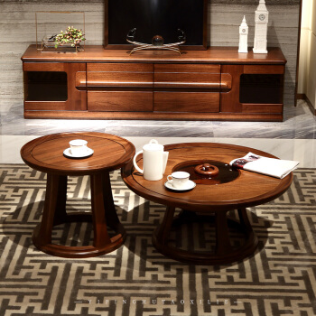 联匠茶何新中国式全实木茶何現代中国式胡桃木創意円形客間茶卓胡桃木サイズ丸茶何