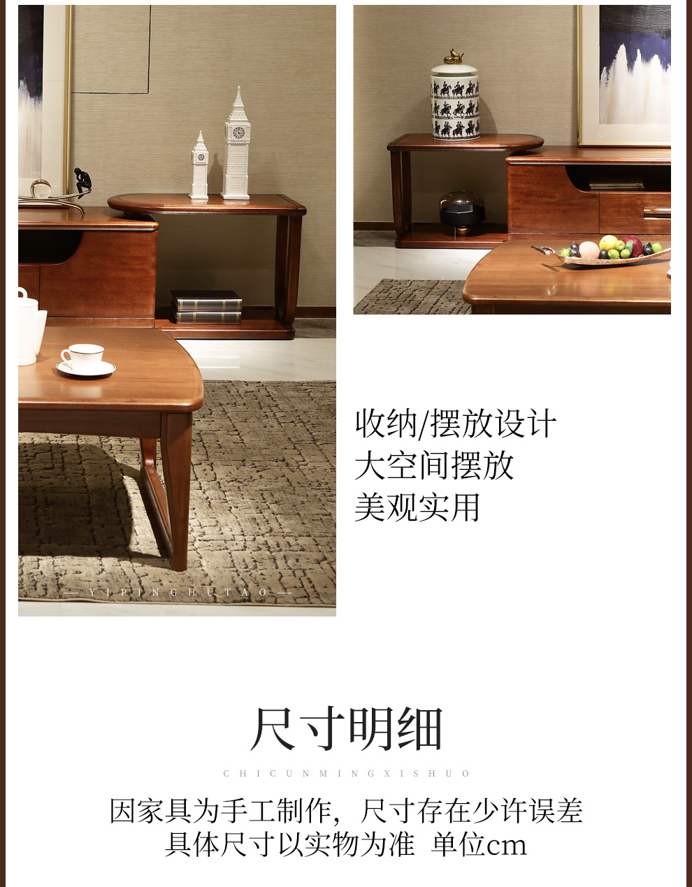 聯匠茶卓全木茶机現代中国式胡桃木茶何テレビ棚リビング家具セット胡桃木茶卓