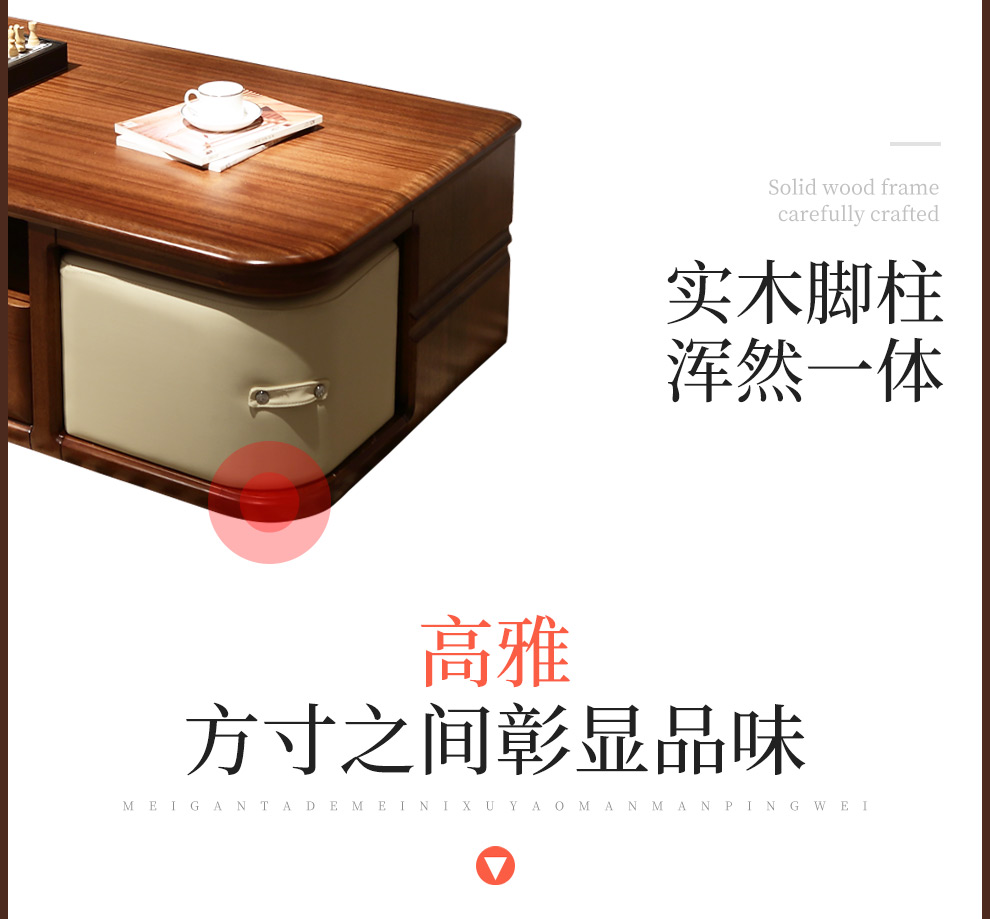 联匠茶卓現代新中国式胡桃木実木茶何简约客間茶台茶芸テーブル家具胡桃木テレビキャビネット