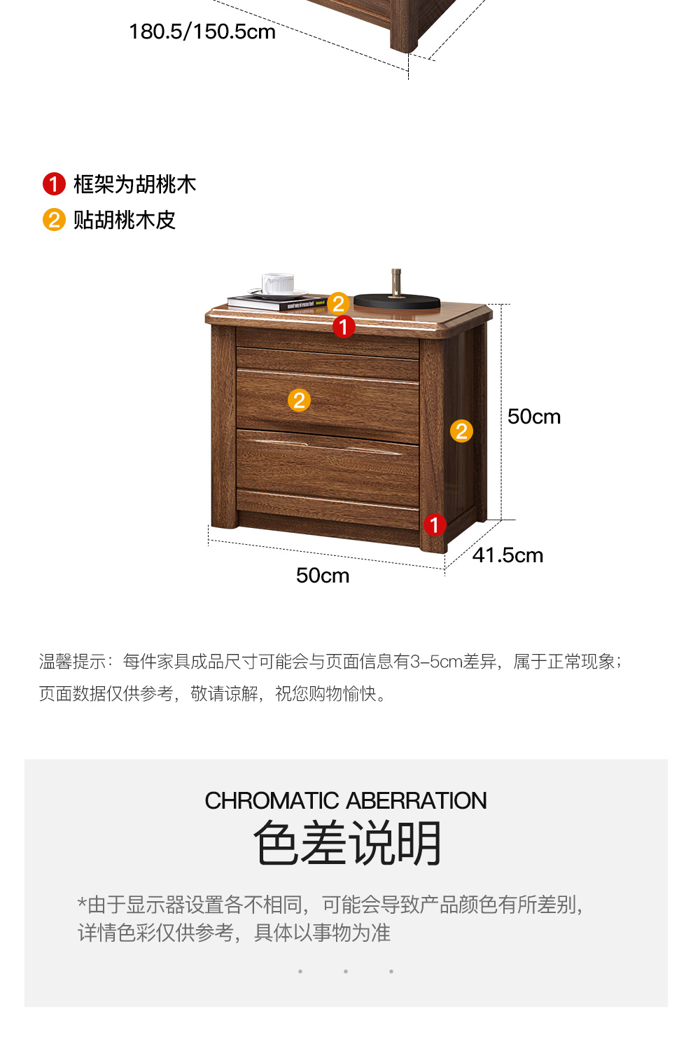 聯匠ベッド中国式の木造ベッド1.5 mダブルベッドの胡桃木床の家具婚床現代の木製ベッド1.8 mシングルベッドの高箱収納セットベッド+6304ベッドの頭台の2つの普通タイプ【サイズ備考】