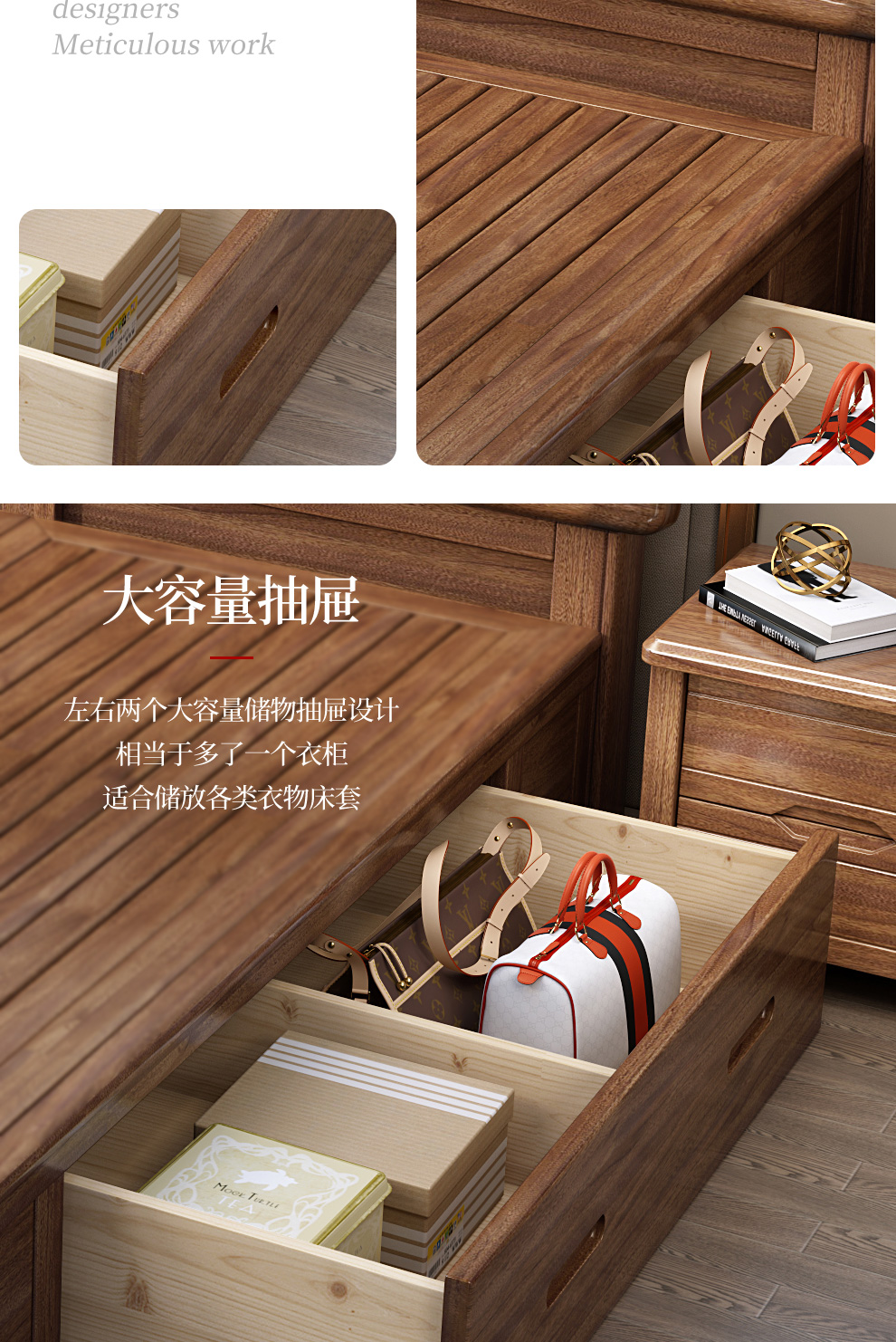 兼匠ベッド中国式の木製ベッド1.5 mダブルベッドの胡桃木床の家具婚床現代の木製ベッド1.8 mシングルベッドの高箱の収納セットは、実木ベッドを組み合わせたものです。【色備考】普通タイプ【サイズ備考】