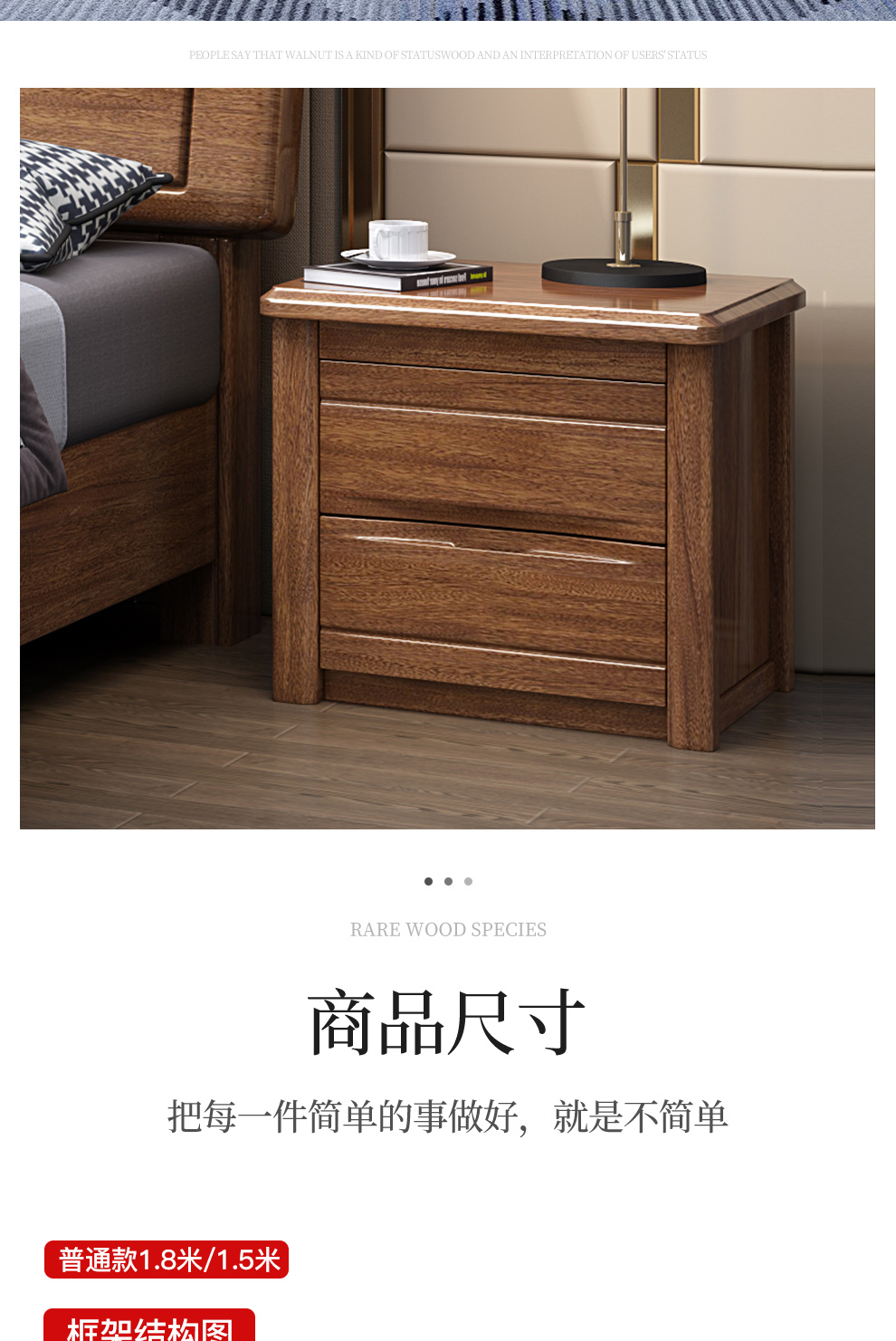 聯匠ベッドの中国式実木ベッド1.5 mダブルベッドの胡桃木床の家具婚床現代実木ベッド1.8 mシングルベッドの高箱収納セットベッド+2箱+410ココナッツブラウンマットレス(やや硬い背保護)の高箱タイプ【サイズ備考】