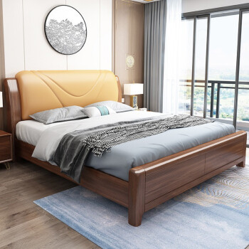 聯匠の実木ベッド金糸胡桃木床1.8メートルダブルベッド1.5メートルのソフトバッグシングルベッド現代中国式高箱収納物引出しベッド家具セット+0031ベッドヘッドカバー*1引き出しタイプ