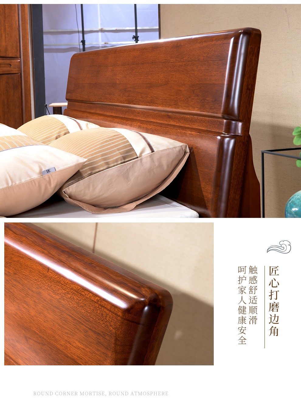 聯匠ベッドの実木床1.8 mダブルベッドの現代中国式結婚ベッドの主なベッドは、新しい中国式収納ベッドの胡桃木シングルベッド+5 Dラテックスベッド+マットレス*2 1.8*2.0 mの高箱タイプです。