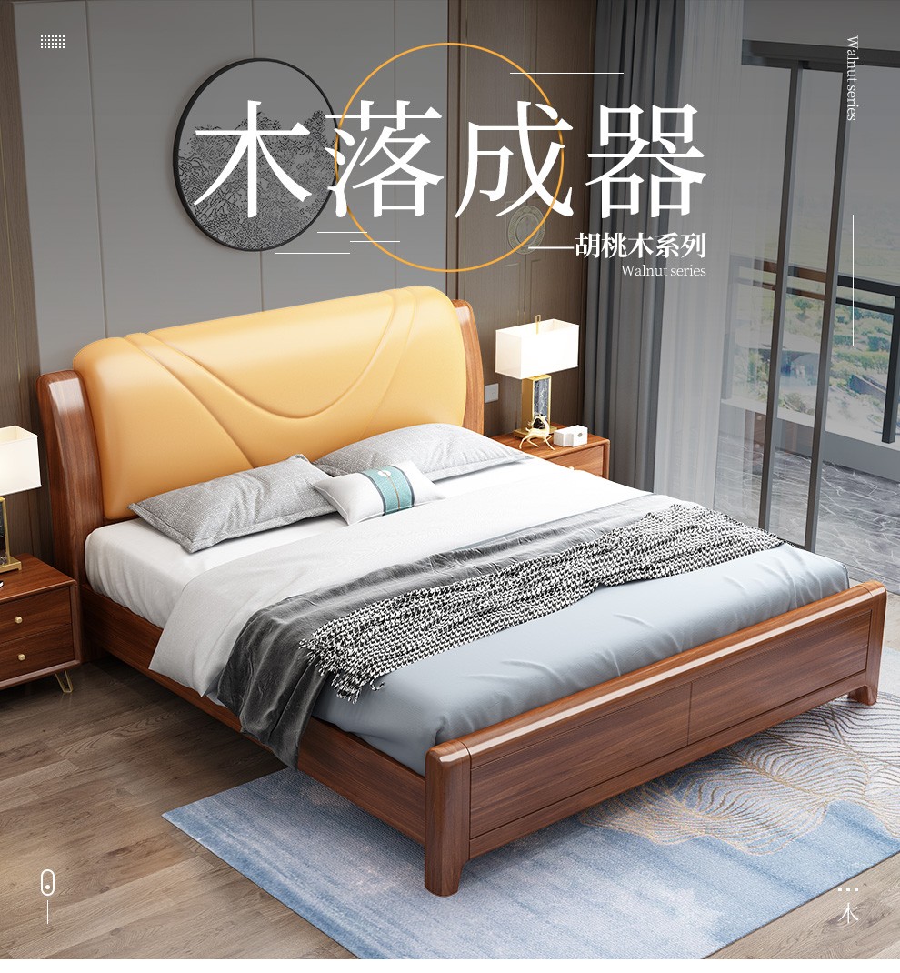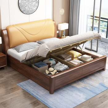 連結匠の実木ベッド金糸胡桃木床1.8メートルダブルベッド1.5メートルの軟包シングルベッド現代中国式高箱収納物引出しベッド家具セット+1箱+8011 9区分のラテックスパッド(ハード両面)引出しタイプ