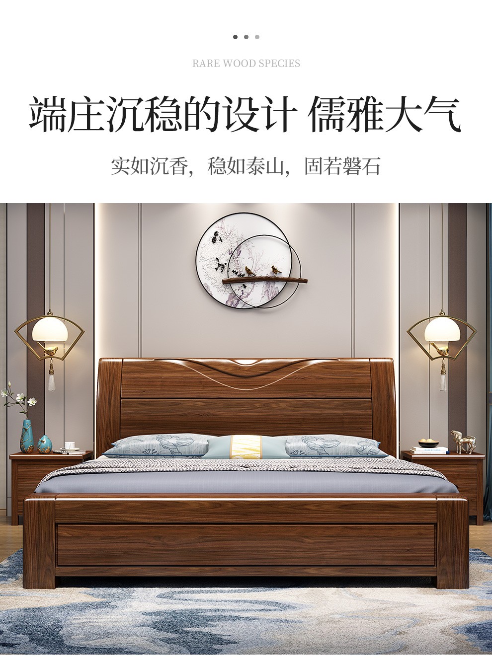 联匠ベッド金糸胡桃の木の実木ベッド1.5メートル現代主な寝室の家具ダブルベッド中国式気圧高箱の保管物1.8メートルのシングルベッド+2つの箱+410椰子のベッドマット(やや硬い背保護)の引き出しのタイプ