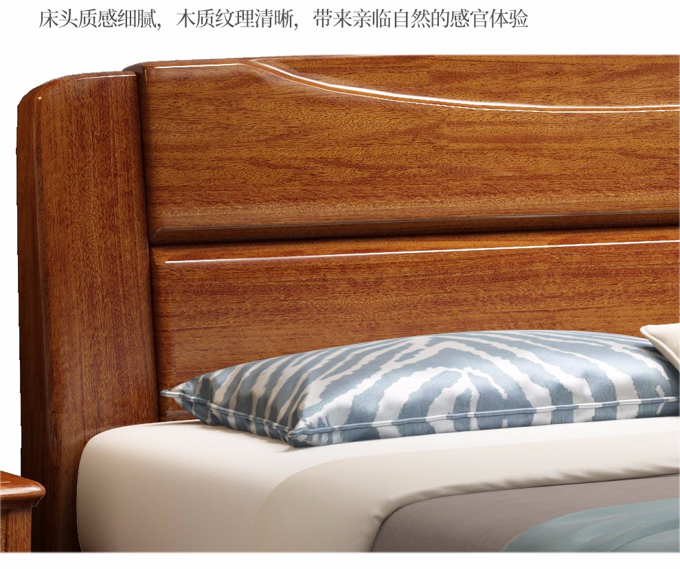 鍛冶屋ベッド金糸胡桃の木の実木ベッドの主な寝室のダブルベッド1.8 m現代中国式の新しい中国式の高箱の収納物のシングルベッド+1箱+410椰子のマットレス(やや硬くて背をかばいます)の引き出しのタイプ