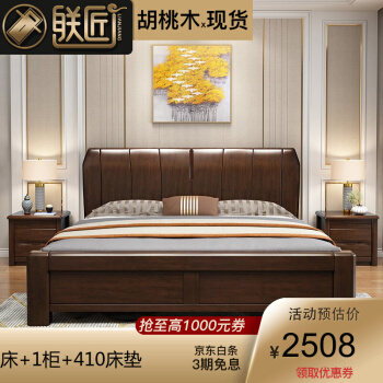 联匠ベッド胡桃木床床床床床床床床床床床床床床床床1.8 m現代中国式家具ダブルベッドベッドベッドベッド1.5 mシングルベッド婚床寝室家具高箱収納ベッド+1箱+410ココナッツブラウンマットレス普通タイプ【サイズ備考】