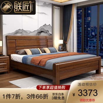 联匠床輸入金糸胡桃木の実木ベッドダブルベッド1.8 m 1.5 m現代中国式の結婚ベッドの主な寝台は高箱の収納ベッド+1箱+589-5 Dラテックスマットレス(ハードで快適)引き出しのタイプです。