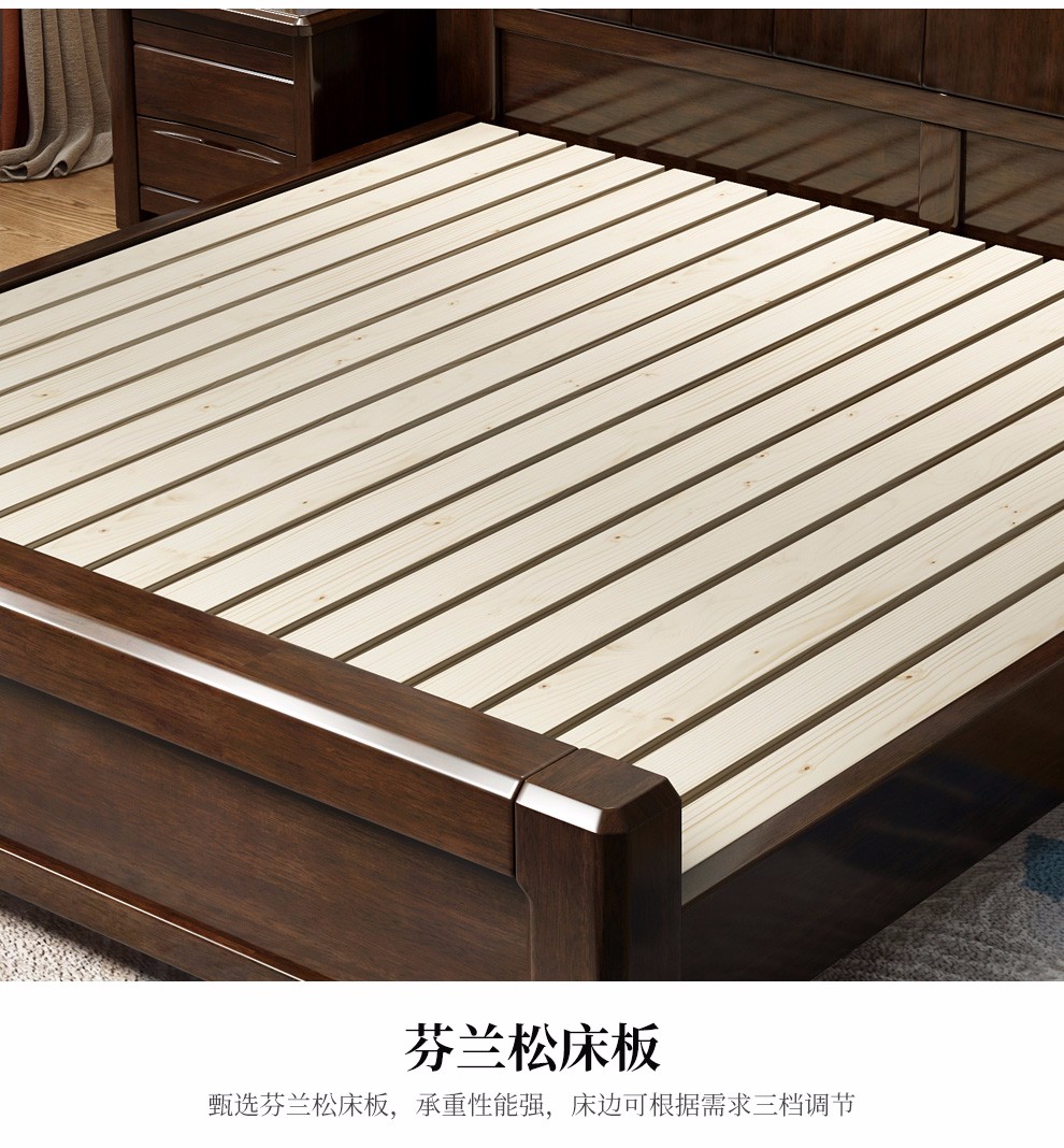 联匠ベッド胡桃木床床床床床床床床床床床床床床床床1.8 m現代中国式家具ダブルベッドベッドの木の床1.5 mシングルベッドの結婚ベッドルームの家具の高箱の収納ベッド+1箱+8009羊のラテックスパッドの高箱タイプ【サイズ備考】