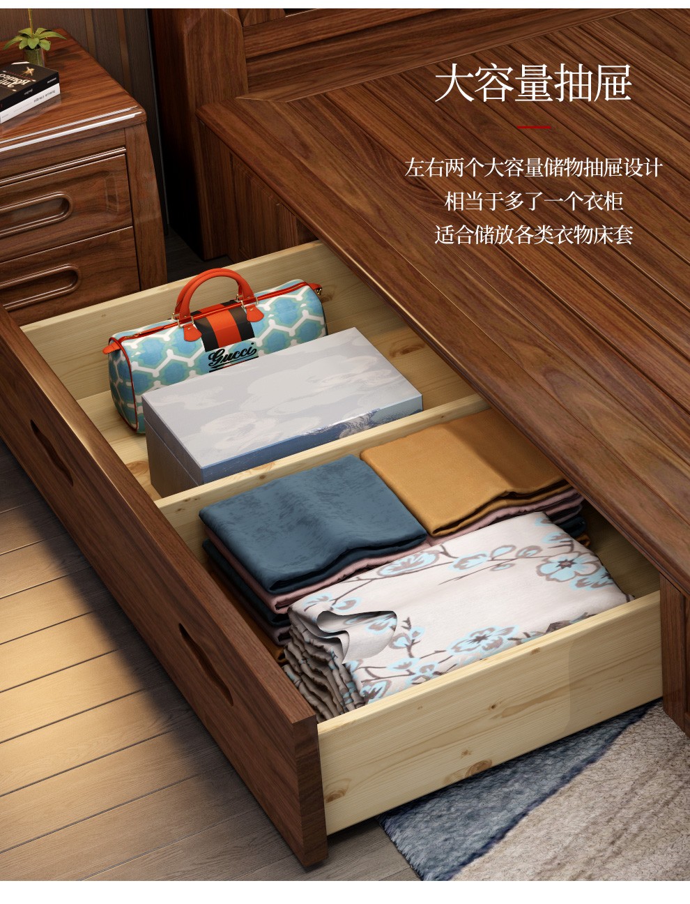 連結匠ベッド金糸胡桃木の実木ベッド1.8 mダブルベッドの新しい中国式家具の主な寝台婚床1.5 m貯蔵品シングルベッド+1箱+8011 9つの分区ラテックスパッド(ハード両面)引き出しタイプ【サイズ備考】