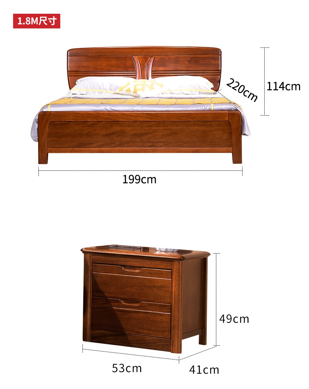 | 商品名 | 聯匠ベッド胡桃木実木ベッド現代中国式ダブルベッド1.8 mシングルベッドの主なベッド+410椰子ベッド+マットレス*2 |