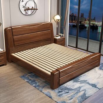联匠ベッド金糸胡桃木の実木ベッドの主なベッドは1.8メートルのダブルベッドです。現代中国式家具寝室の収納物はシングルベッド1.5メートルの結婚ベッド+2つのキャビネット+8011 9つの分区ラテックスパッド(軟硬両面)の引き出しのタイプです。