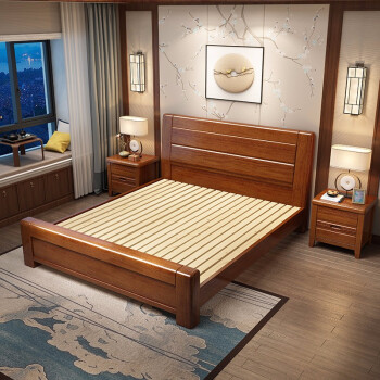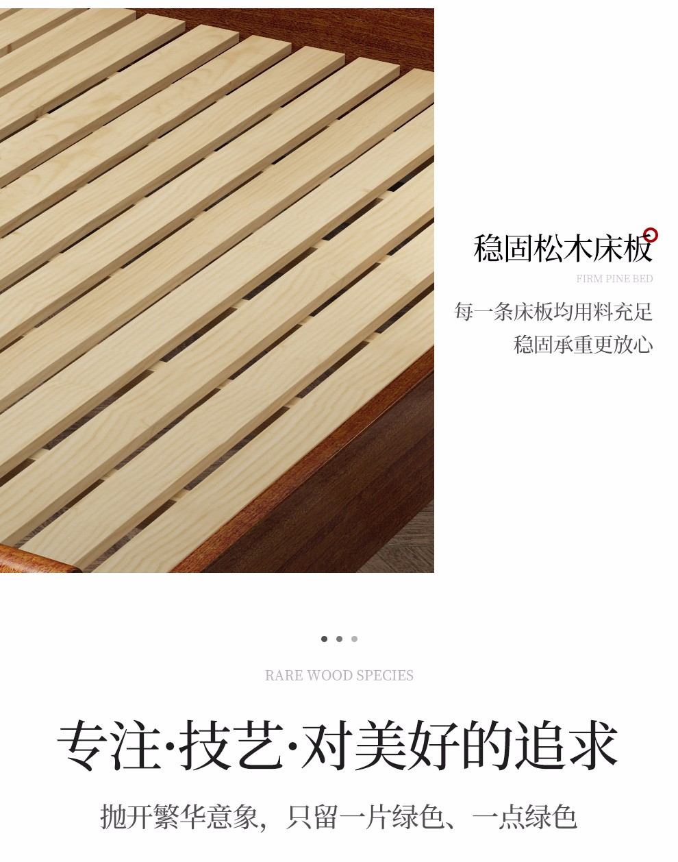 联匠床实木床ダブルベッド金糸胡桃木1.8メートル現代中国式の主な寝室の大ベッド、中国式の1.5メートルの高さの箱の引き出しベッド+1箱+8011 9つの分区のラテックスパッド(柔らかい両面)の引き出しのタイプ