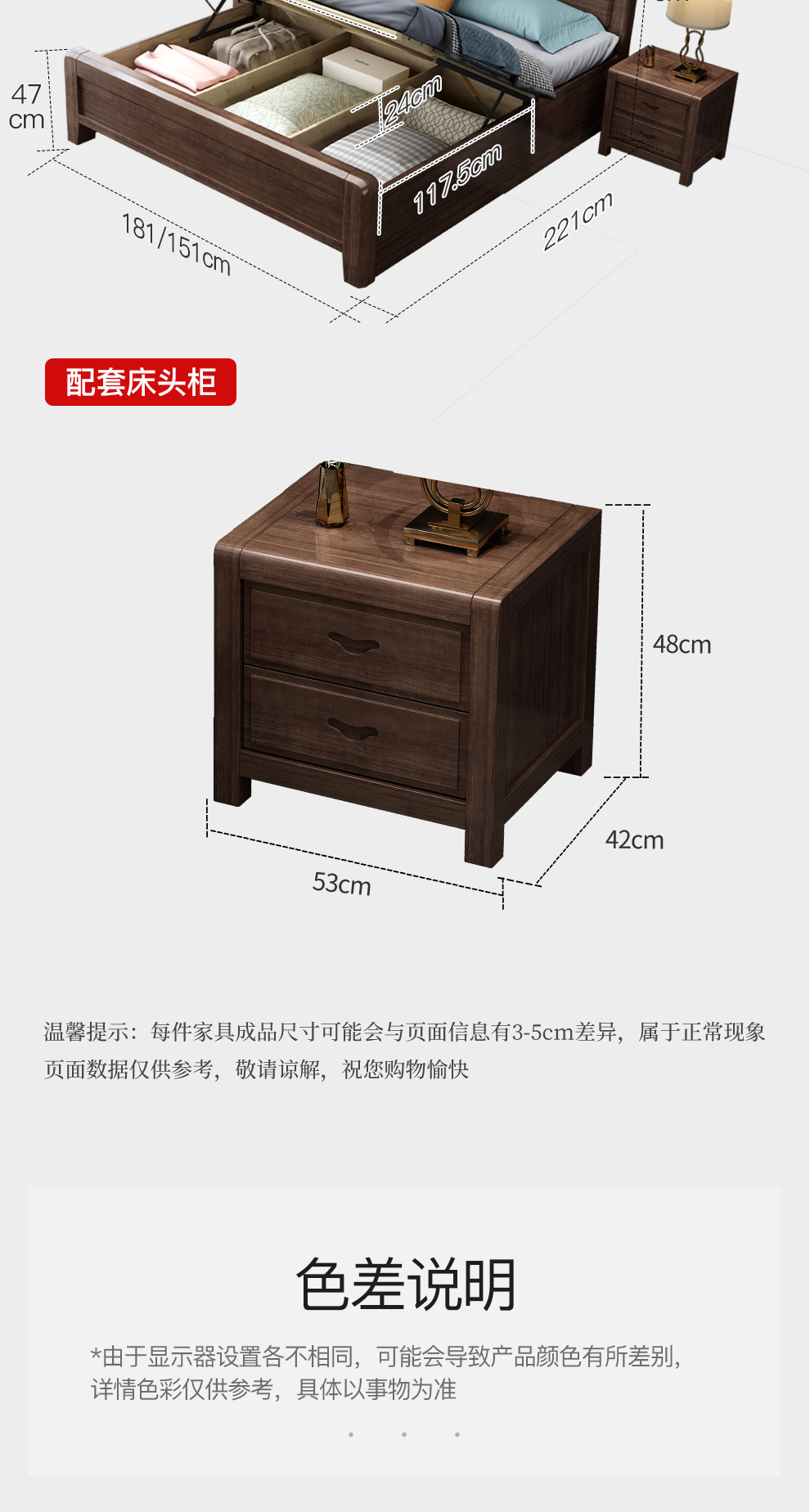 | 商品名称 | 聯匠ベッド現代中国式胡桃木床1.5/1.8メートルダブルベッド結婚ベッド新品中国式実木ベッド高箱保管セットセットセット寝室家具ベッド+2箱+8011九分区ラテックスパッド(ハード両面)引き出しタイプ |