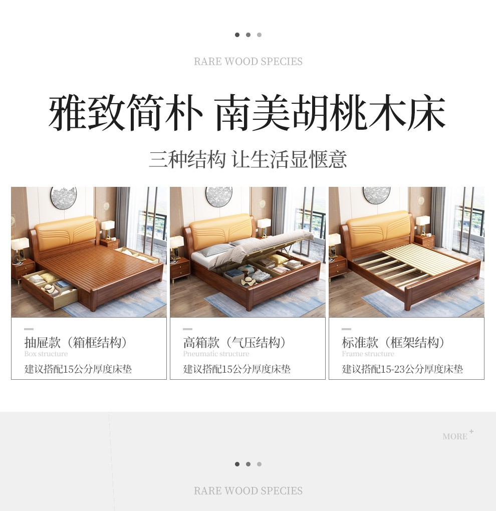連結匠ベッド金糸胡桃の木のベッドの実の木のベッド1.8メートルの軟ベッドの1.5メートルのダブルベッドの現代中国式収納物シングルベッド+2箱+589-5 Dラテックスマットレス(軟質で快適)の引き出しのタイプ