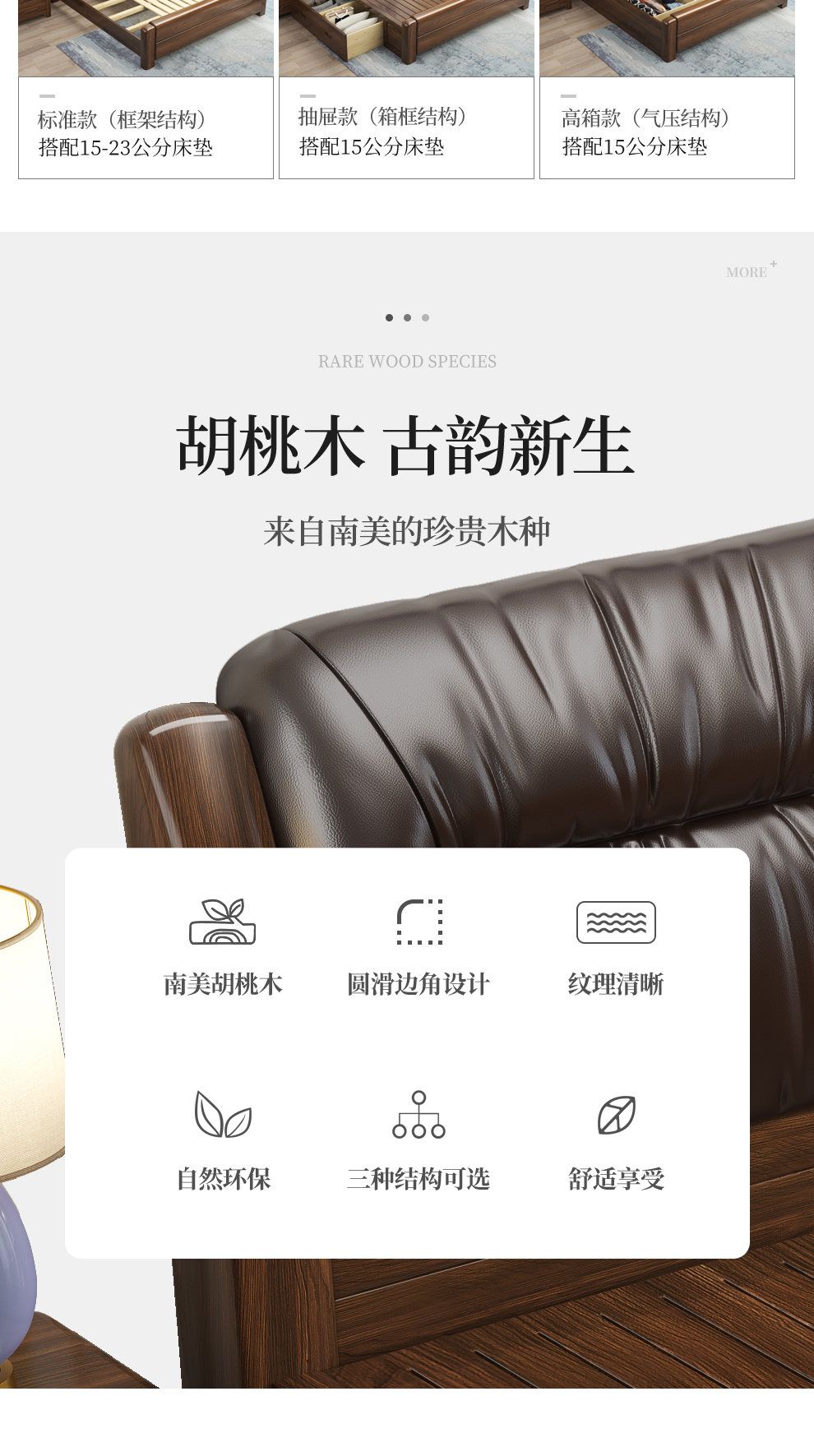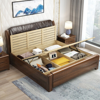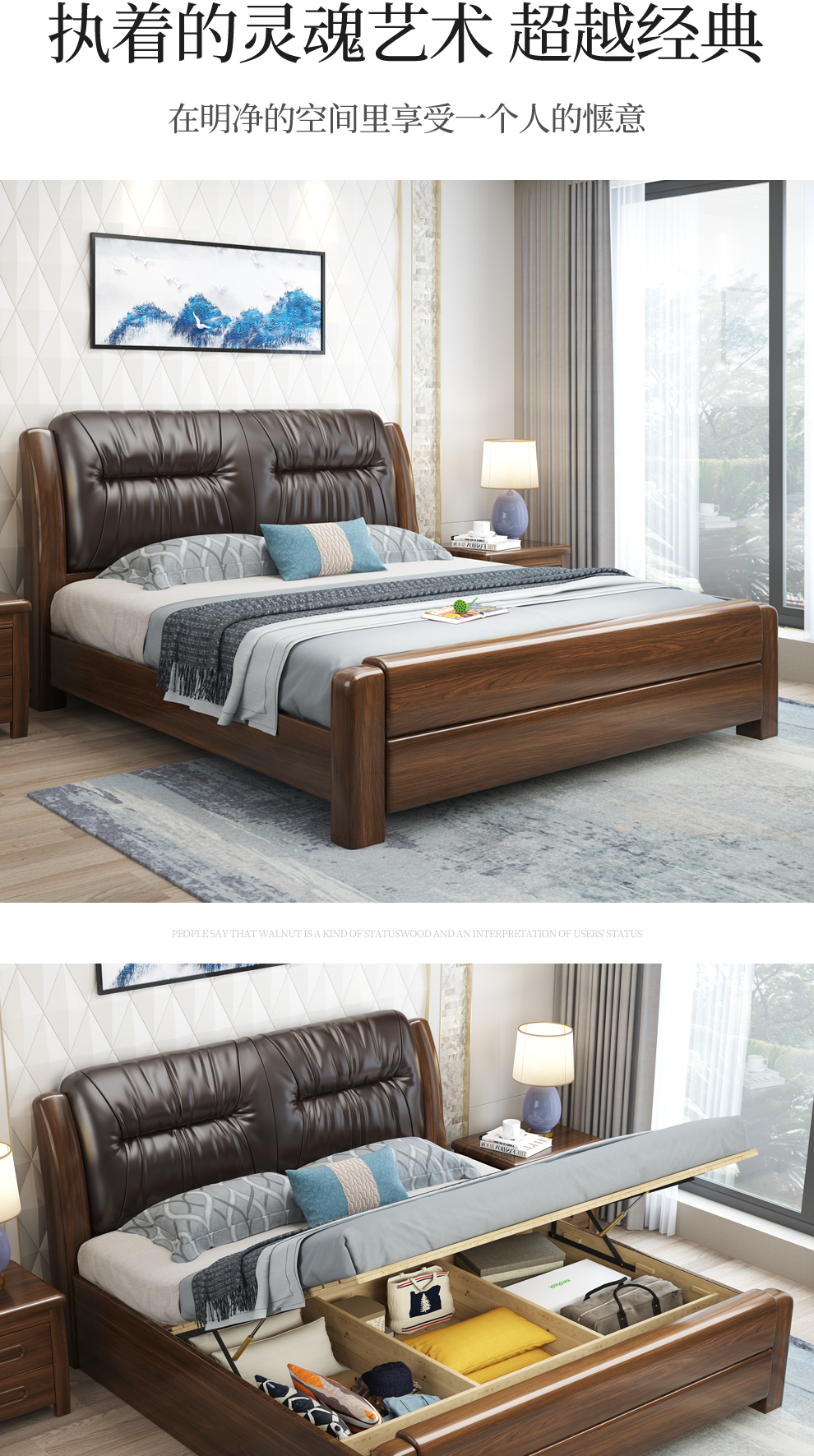 聯匠胡桃木の実木ベッド1.8メートルの高さの箱の荷物を保管するダブルベッドの1.5メートルの背もたれの柔らかいカバンのシングルベッドルームの家具の引き出しの結婚ベッドのベッド+2つの箱+8011 9つの分区のラテックスのマット(柔らかい硬い両面)の引き出しの項