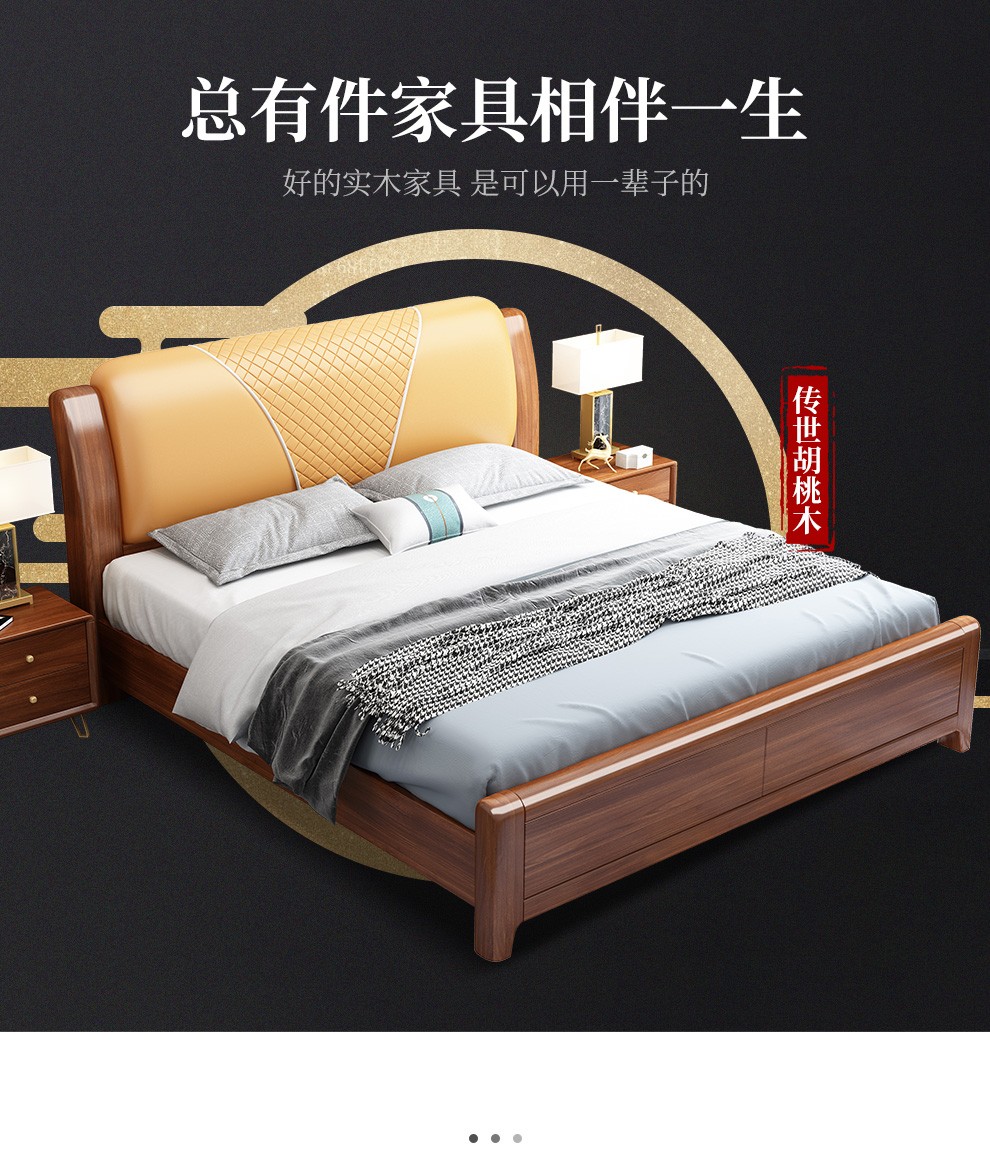 联匠床金糸胡桃木床床床の実木床1.8 m現代中国式高箱収納物ダブルベッドの主寝台1.5 m引き出しシーツの人用ベッド+2箱+8011 9分区ラテックスパッド(柔らかい両面)引き出しタイプ