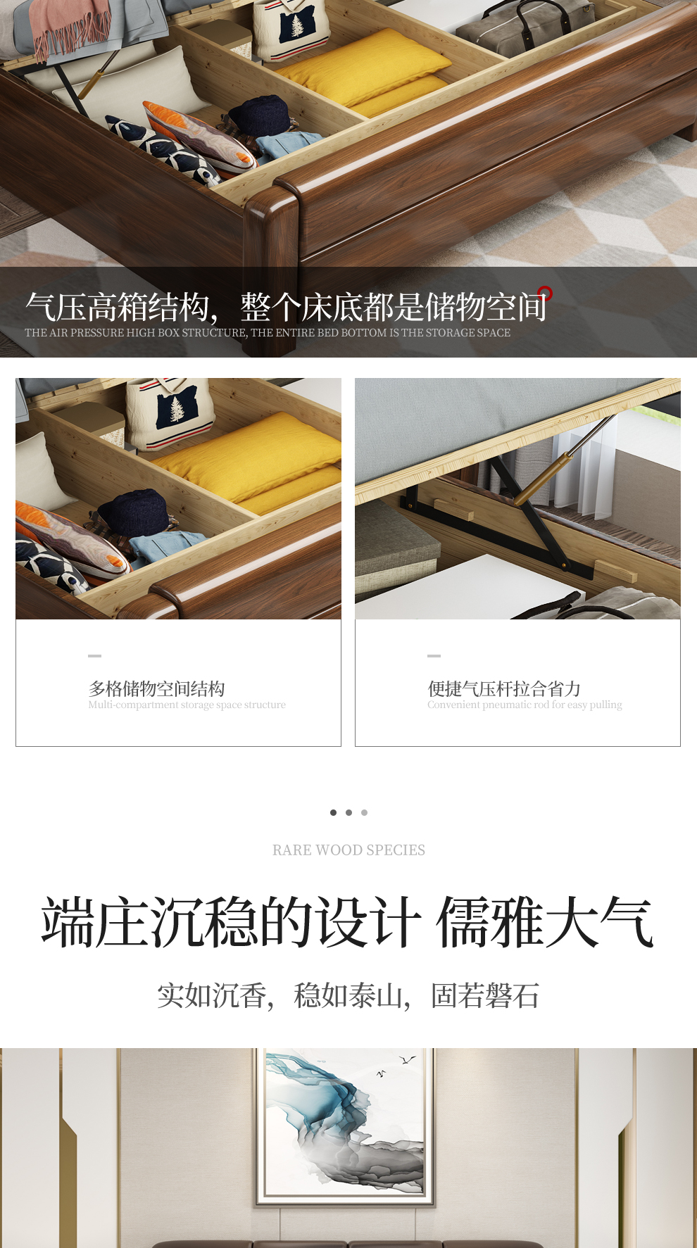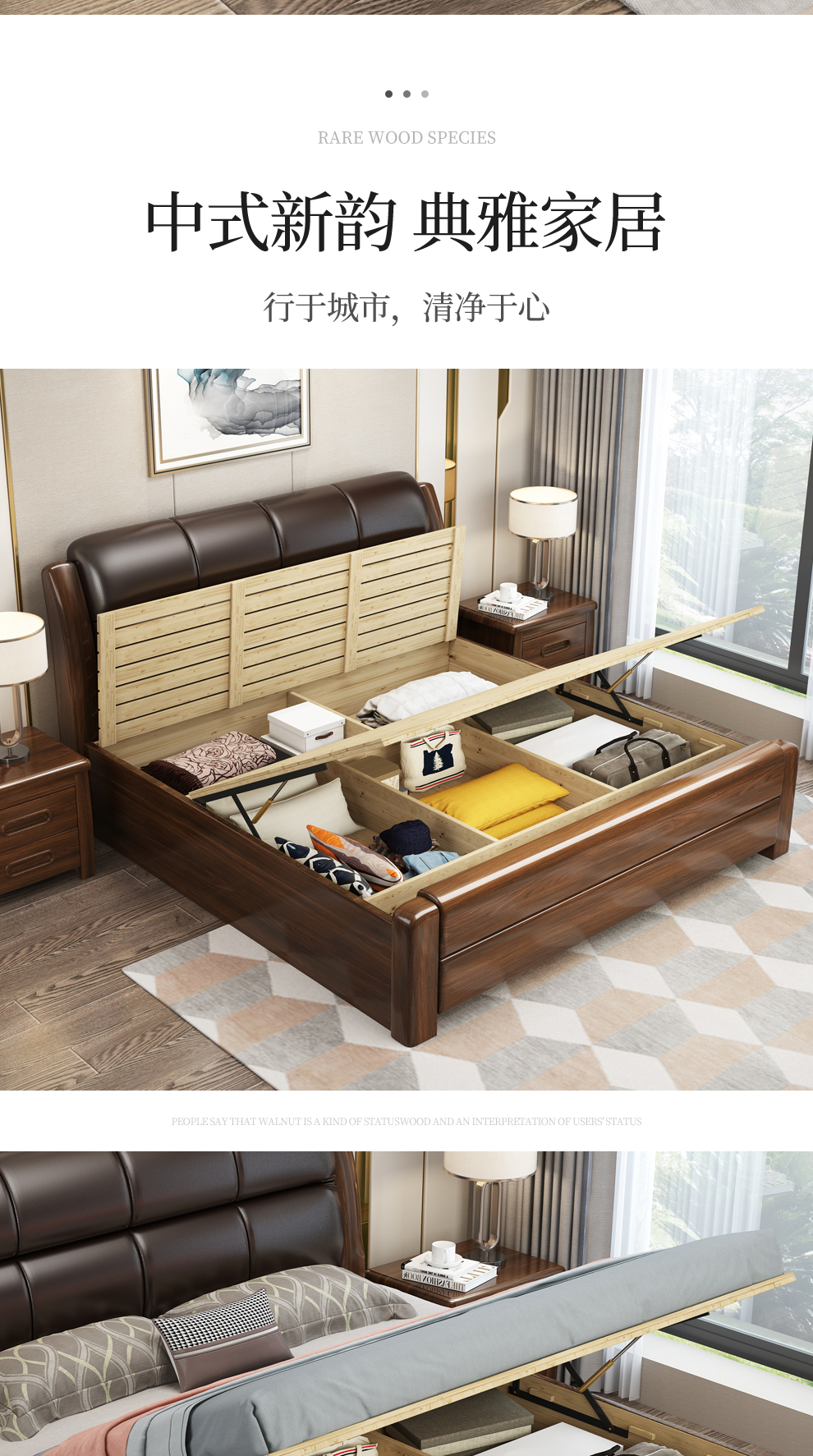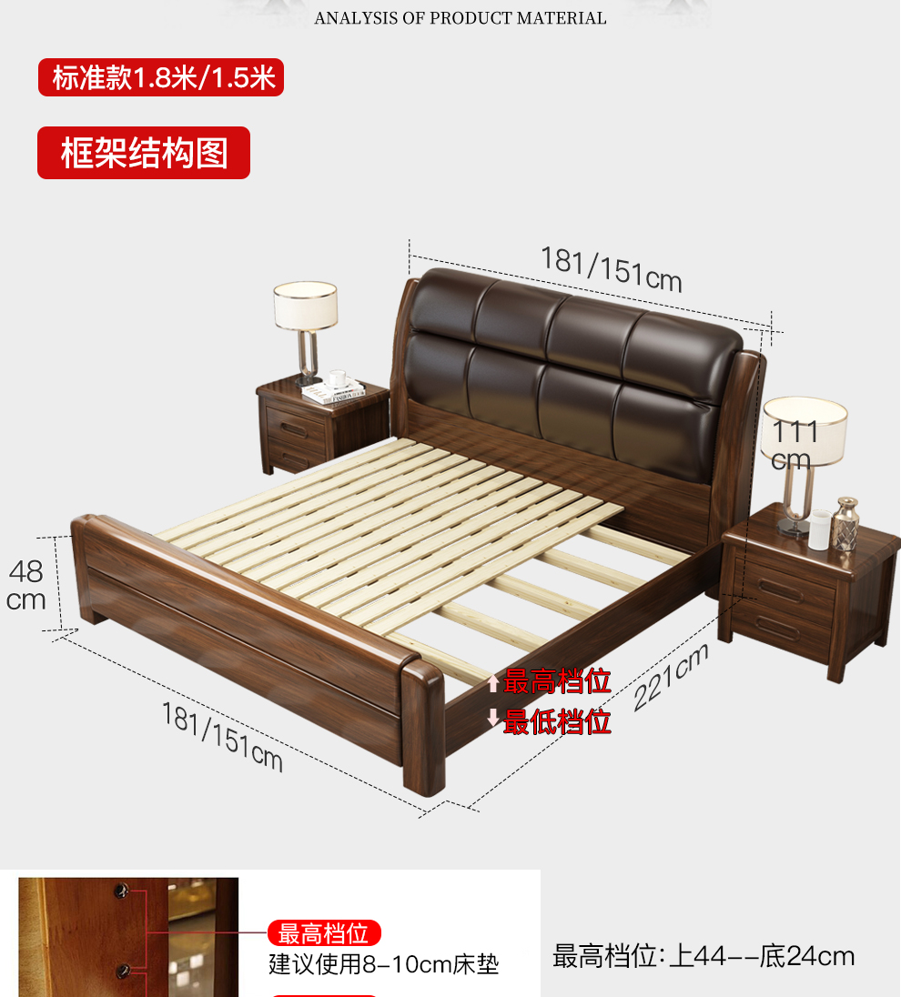 連結匠ベッド胡桃木実木ベッド1.8 mダブルベッド高箱収納物引出しベッド1.5 m柔らかいシングルベッドルーム家具結婚ベッドセット+1箱+410椰子棕床マット(片側の背骨を保護する)引出しタイプ