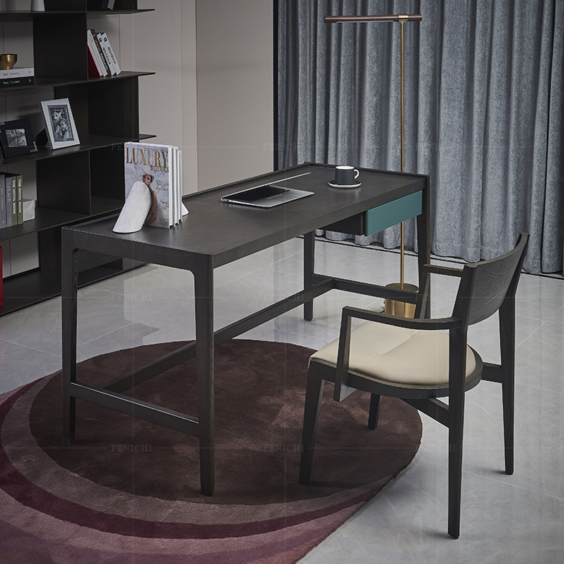 フェニそのイタリア式の極簡単な白い蝋の木の本の机と椅子を組み合わせた現代書斎家具セットは、軽奢な実木のコンピュータテーブルとソバカスの緑の本のテーブルと椅子を組み合わせました。
