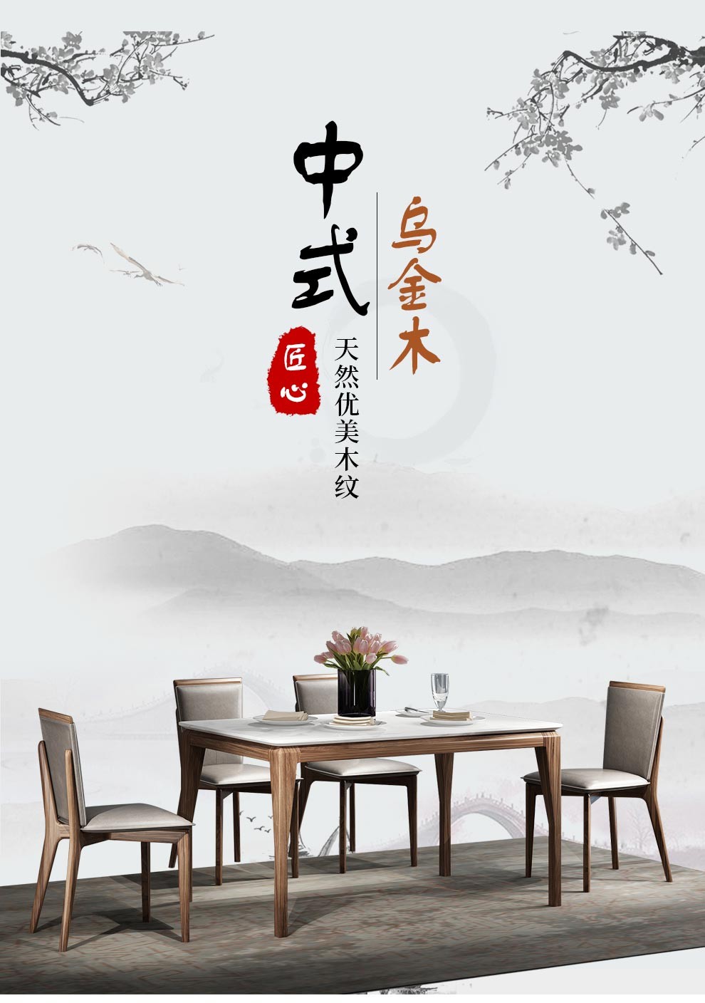 聯匠テーブル烏金木全テーブル現代中国式大理石長方形テーブル新中国式テーブル1.4 mテーブル+食事椅子*4枚【写真価格ブランドの見積】-京東