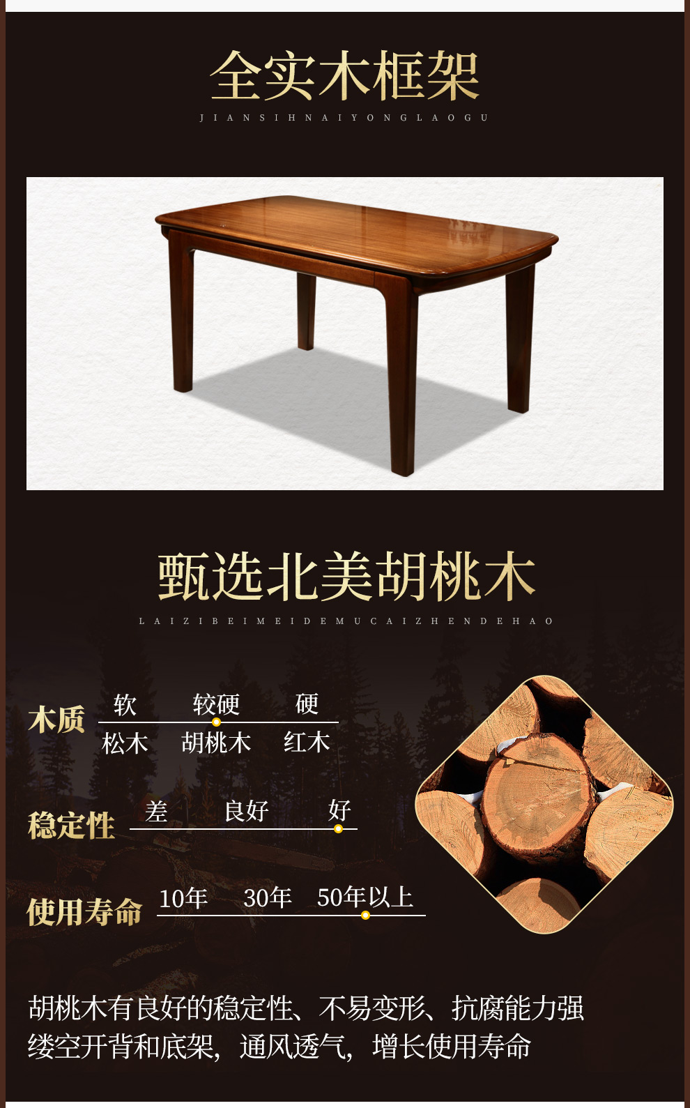 聯匠テーブル胡桃木のテーブルはセットのテーブルに寄りかかっています。新しい中国式のテーブルとテーブルは1.6 mのテーブルと6つの椅子を組み合わせています。