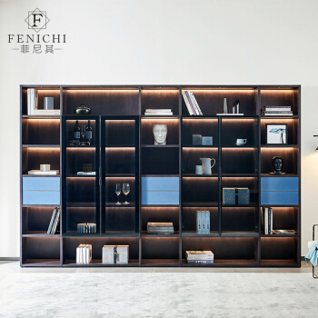 フェニの意味式の極簡単な多層書棚の実木帯LEDライト3.3 m書棚ガラスドアの近代的な軽豪華書斎家具書棚の意味式はきわめて簡単です。